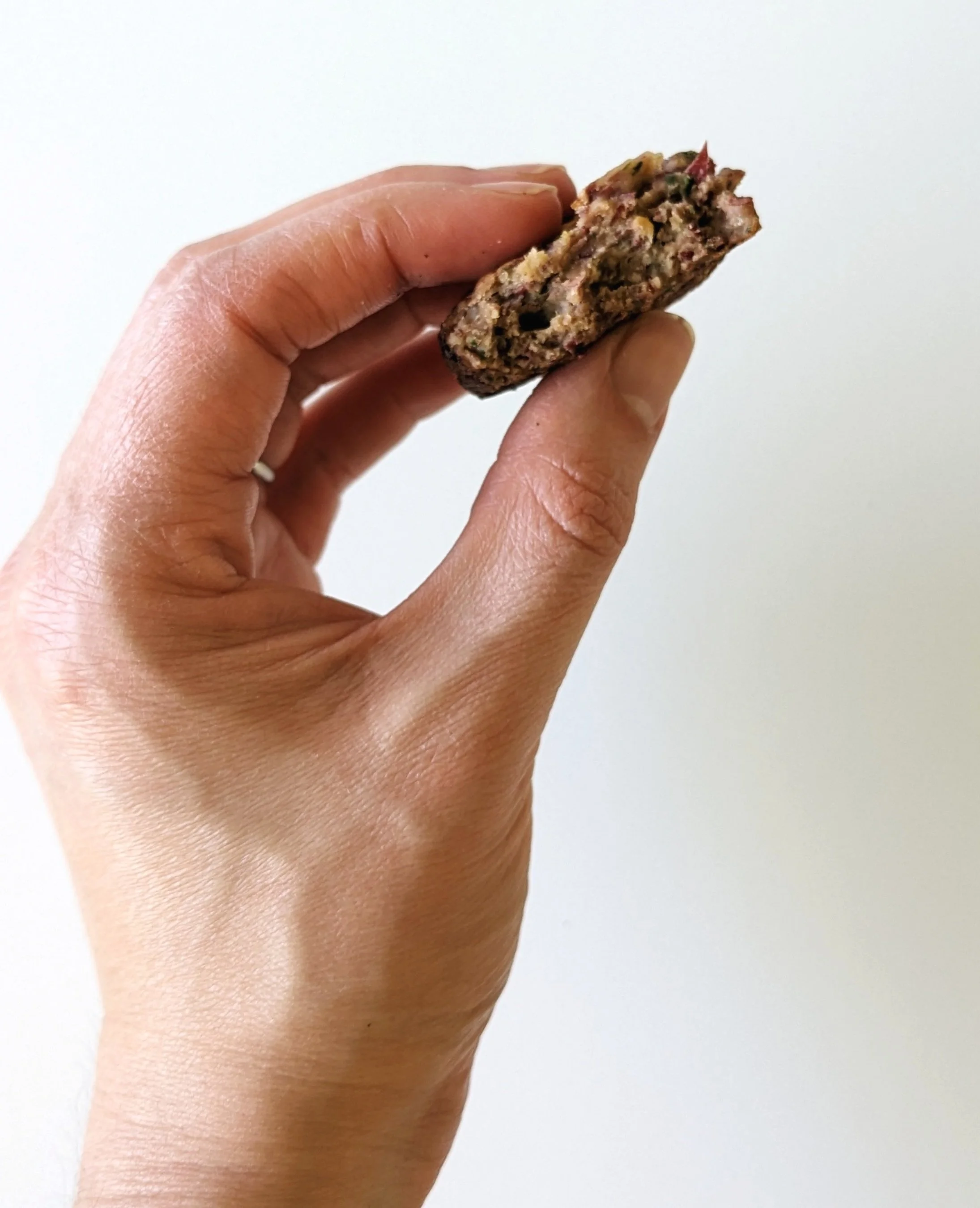 • To ensure patties are safe and appropriate for baby starting solids, ensure that veggies are finely chopped and cooked thoroughly. Once patties are cooked, cut into strips for 6 - 9 month olds and small bite size pieces for 10+ months.
